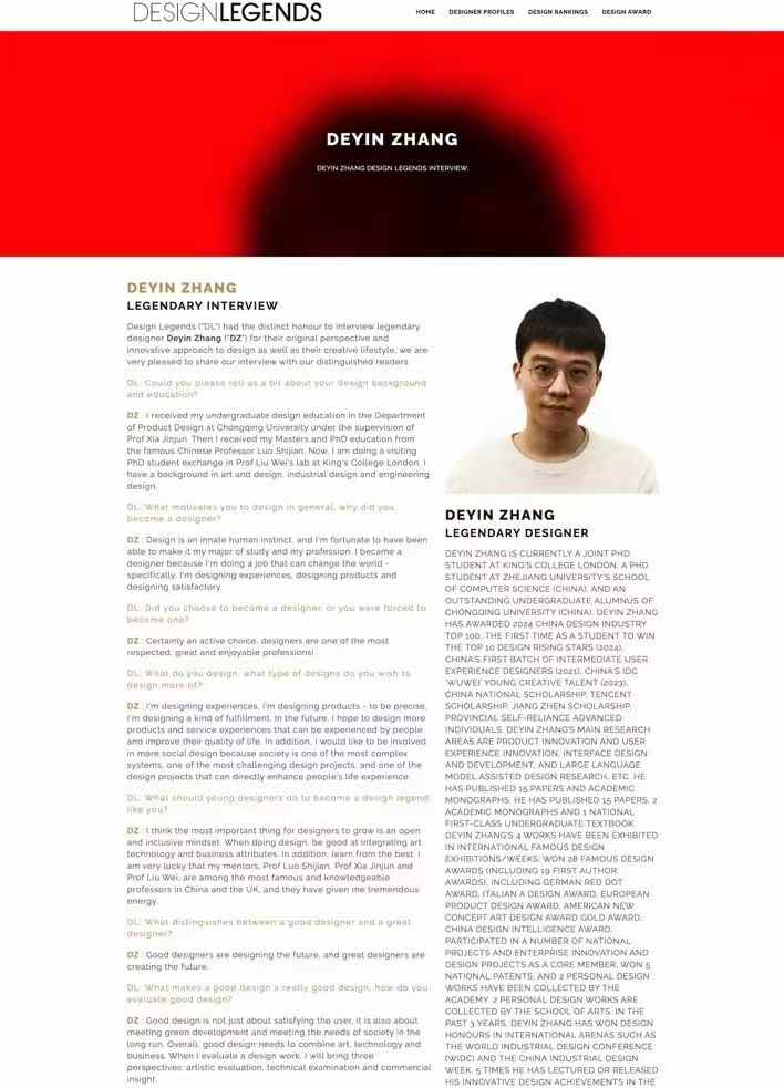 2025年1月,校友张德寅被意大利A Design Award组委会关注并作为DESIGN LEGENDARY(设计传奇人物)接受采访,入选DESIGN LEGENDS栏目。