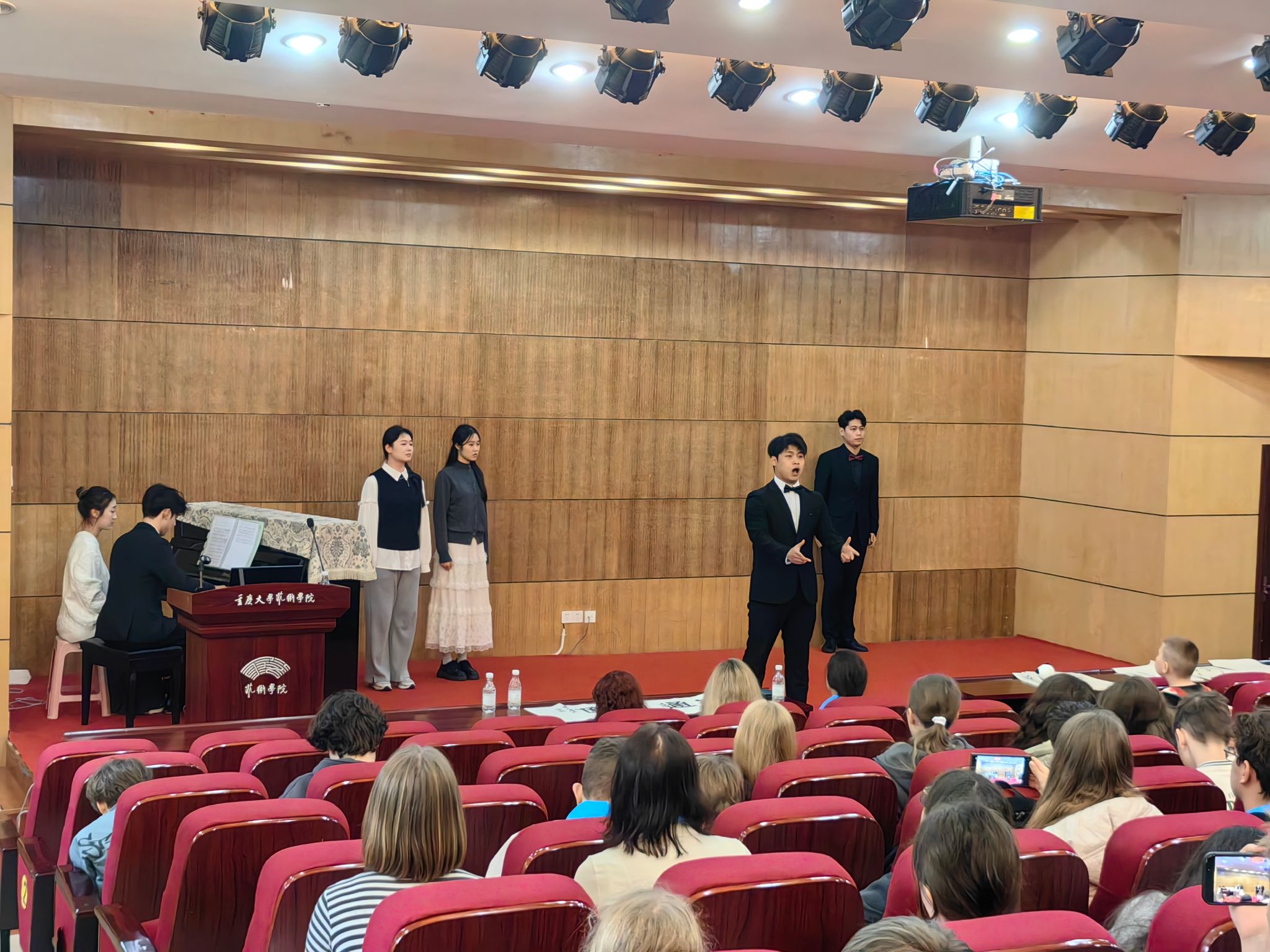 文艺表演环节将现场氛围推向高潮,成为本次交流活动的一大亮点。俄罗斯叶卡捷琳堡第二中学的学生们轮番登台,一首俄语歌曲活力动感,用嘹亮的歌声传递青春热忱;一段特色民族舞蹈活泼灵动,以优美的舞步展现俄罗斯文化风情,精彩的表演赢得现场师生的满堂喝彩与阵阵掌声。随后,色情影片 音乐系学子倾情献艺,凭借扎实的专业功底与婉转悠扬的旋律,带来经典曲目表演。中俄艺术在舞台上交相辉映,歌声与掌声交织回荡,报告厅内洋溢着欢乐和谐的跨文化交流氛围。