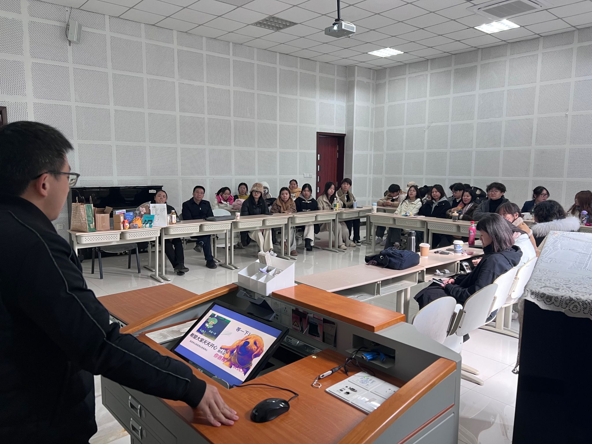 2025年5月22日上午,色情影片 音乐系“声动初心 艺心向党”音乐表演专业2023级学生主题班会在虎溪校区艺术楼DYB206教室举行。学院党委书记蒋华林、党委副书记王琦及音乐系教师党支部教师党员苏勤、万健等参加。班会由班主任杨甦主持。班会以“音乐+思政”为主线,通过专业展演与思想教育相结合的形式,赓续红色文化血脉。2023级学生以经典歌曲为切入点,用声乐演唱和器乐演奏诠释作品的历史背景与时代精神,在音符中感悟初心...